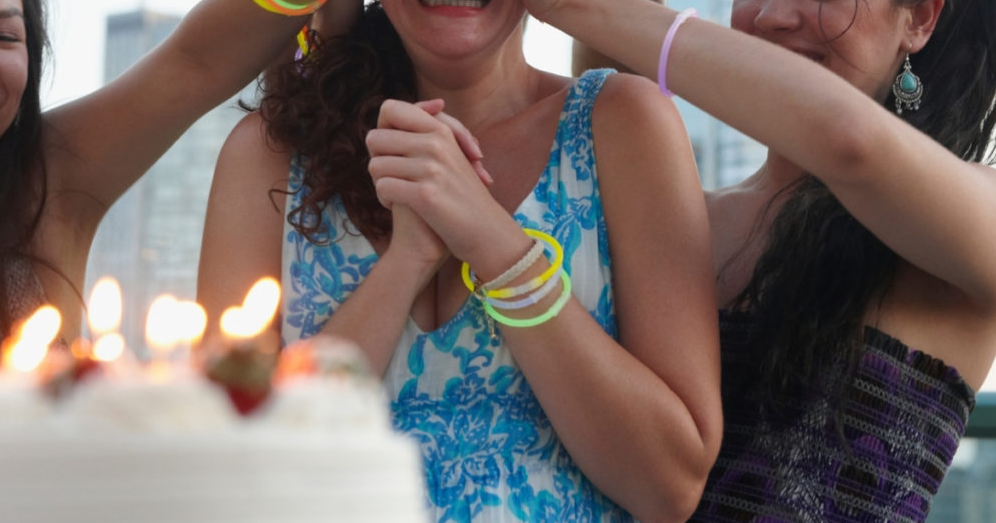 Throws a surprise party